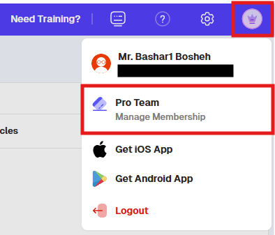 2. Click your profile icon (top right) and select “Manage Membership.”