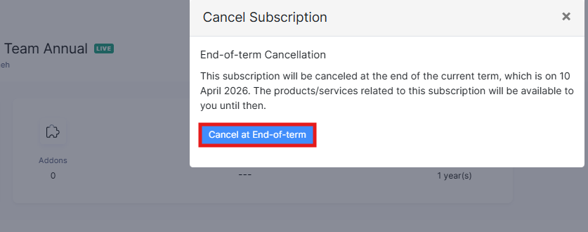 6. Confirm by selecting “Cancel at End-of-Term.”