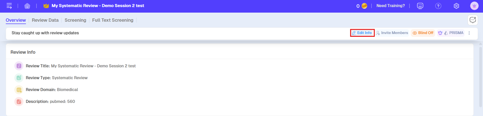 Rayyan makes it easy to edit, update, correct, rename or change the title or name of your review and accompanying metadata. Follow these simple steps: