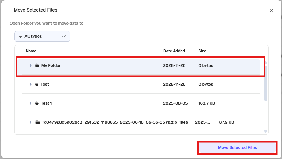 You can create folders to structure your content however you prefer. Move uploads into folders to keep everything tidy.