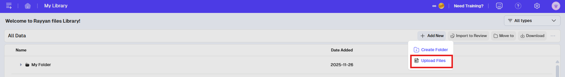 You can upload any supported file to My Library for safekeeping and later reuse.